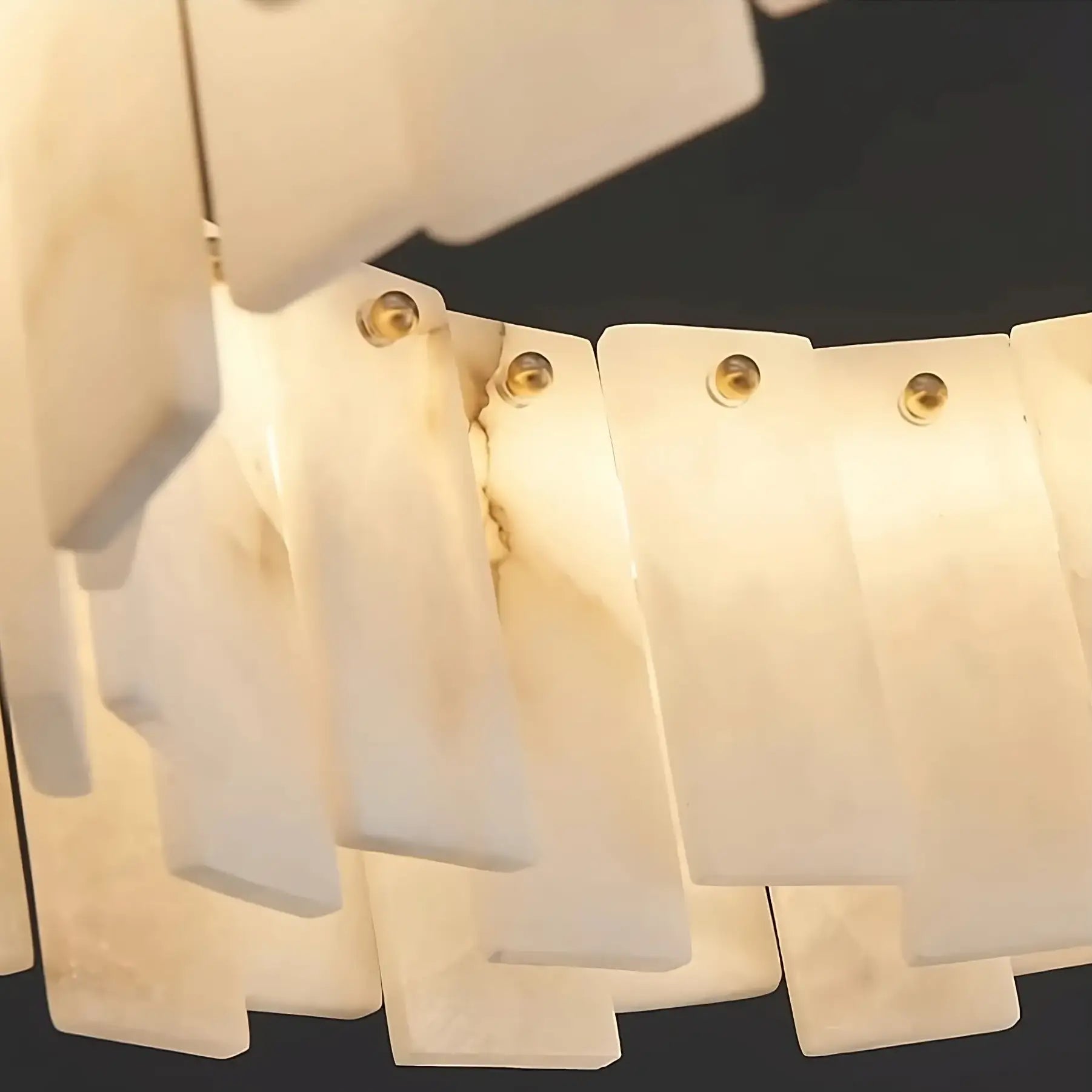 Enhance your dining experience with the Moonshade Natural Marble Dining Room Chandelier. Made from high-quality Spanish imported marble, its gentle illumination and copper accents will bring sophistication to your room. Indulge in the opulent atmosphere and refined aesthetic.