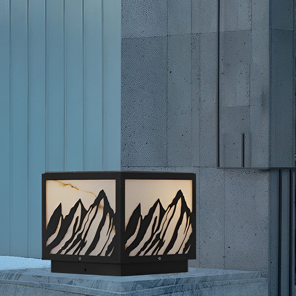 Outdoor Waterproof LED Mountain Scenery Black Solar Fence Post Lights