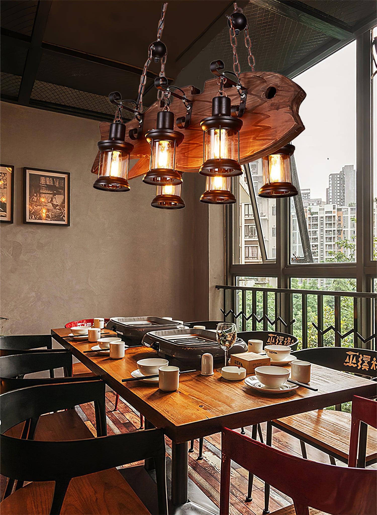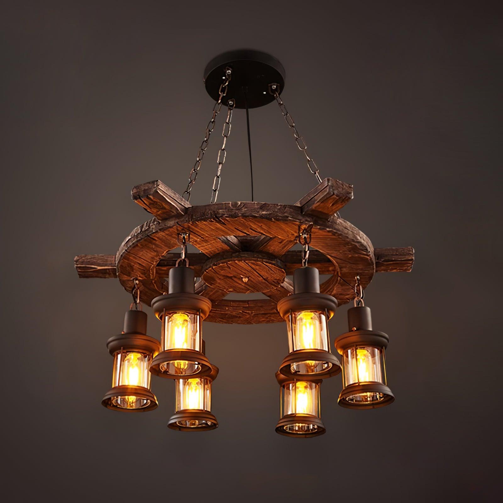 Nautical Industrial Style Wooden Ceiling fixture Chandelier