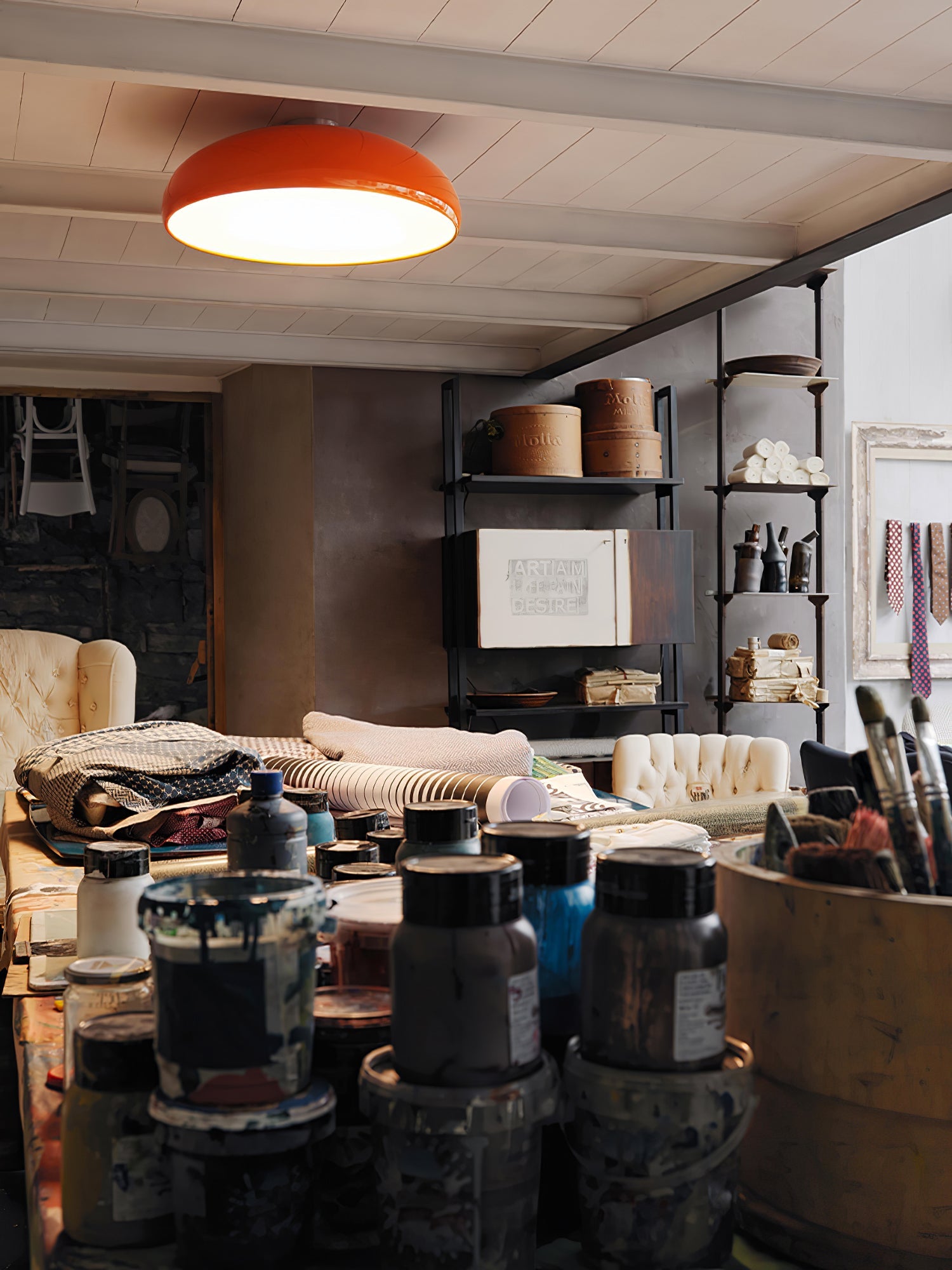 The Pangen Ceiling Lamp seamlessly blends luxurious form and function for endless appeal. Its velvety polycarbonate diffuser provides abundant, soft illumination, while the glossy aluminum dome is a captivating modern statement. Enhancing any space with its subtle sophistication, this piece is a timeless addition to any elegant abode.