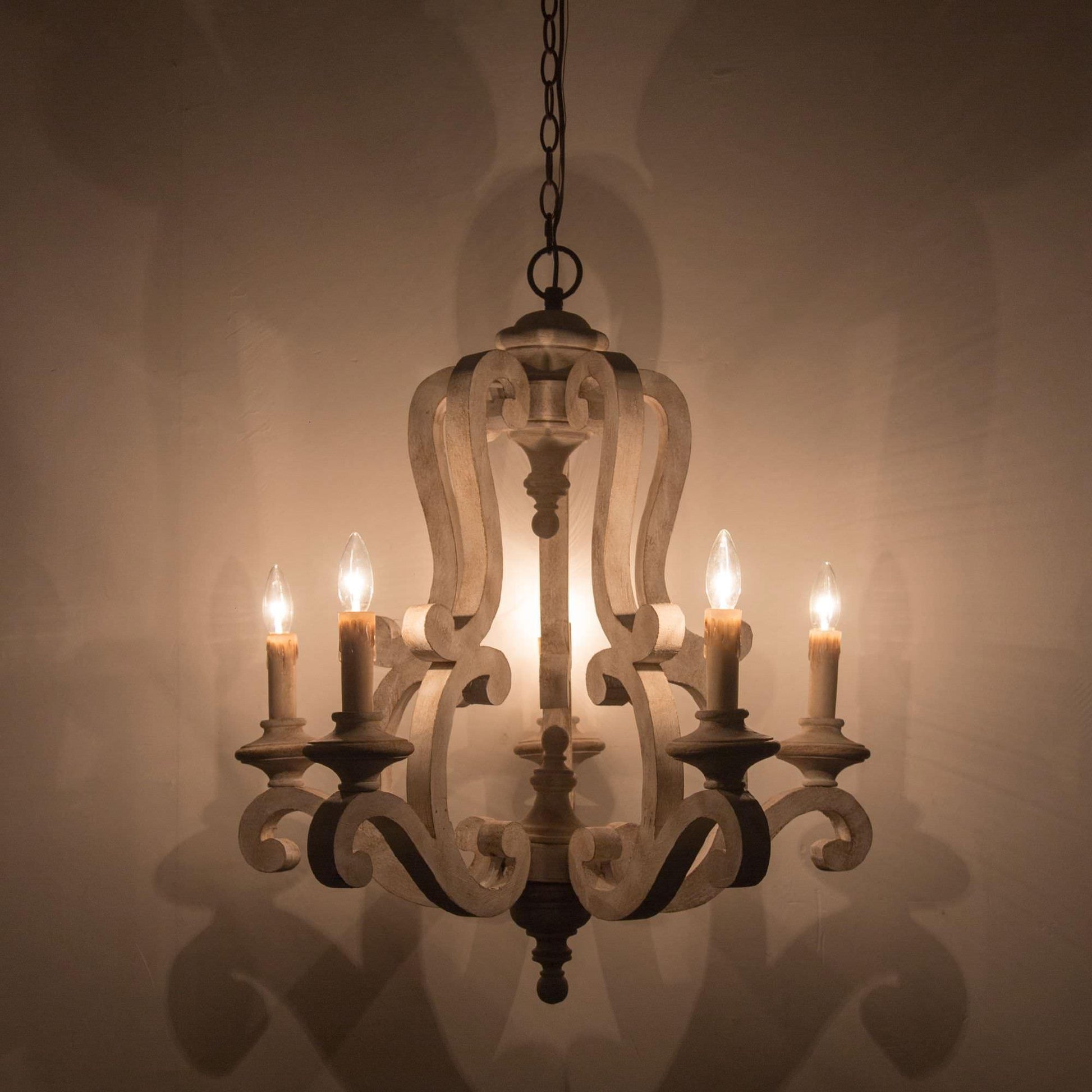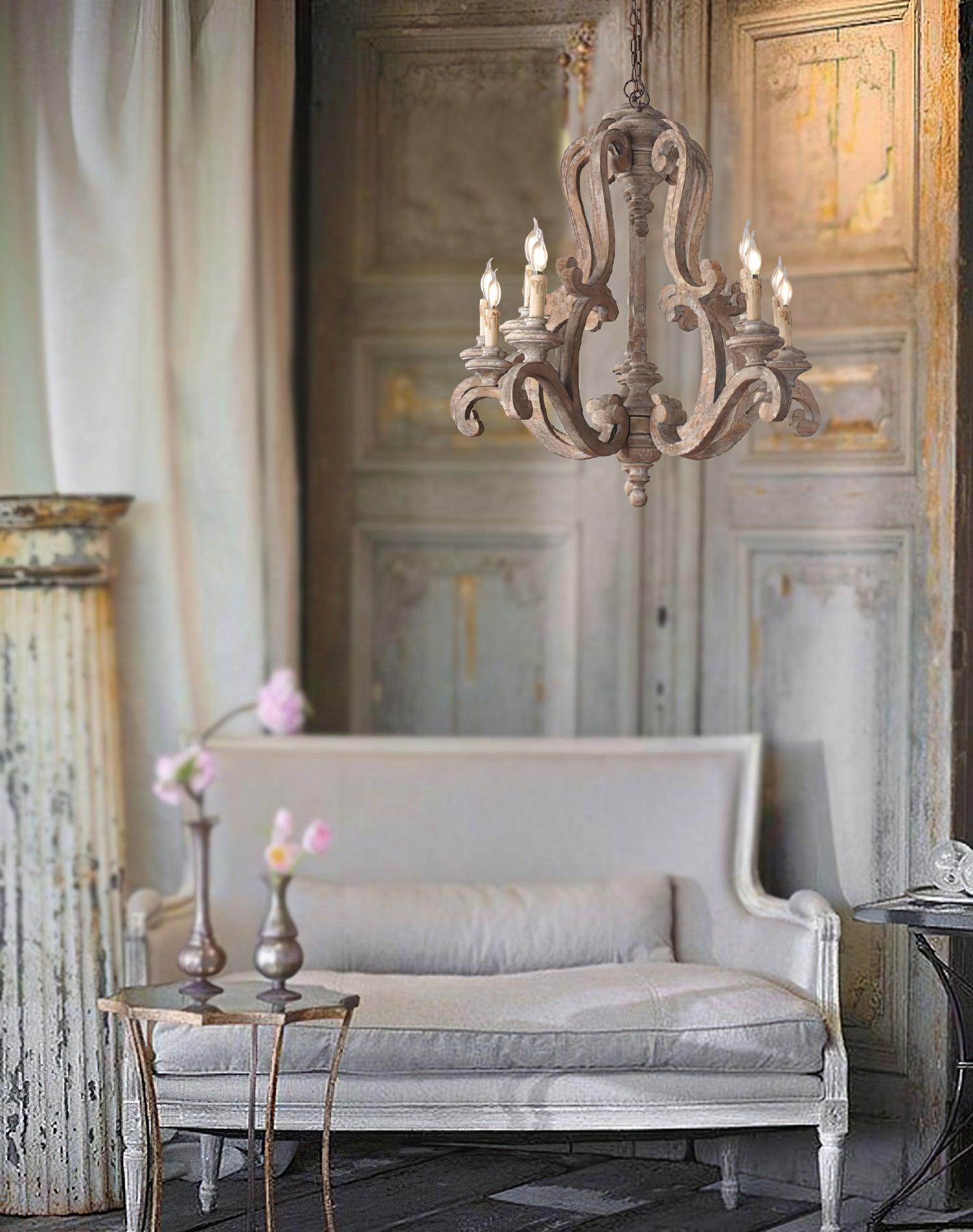 Infuse a refreshing cottage feel to your home with this wooden chandelier. Crafted of wood with a distressed antique white finish, this farmhouse chandelier features a candelabra base with Four candle-style lights, lending a touch of elegance to your dining room or foyer while dispersing plenty of light over the space.