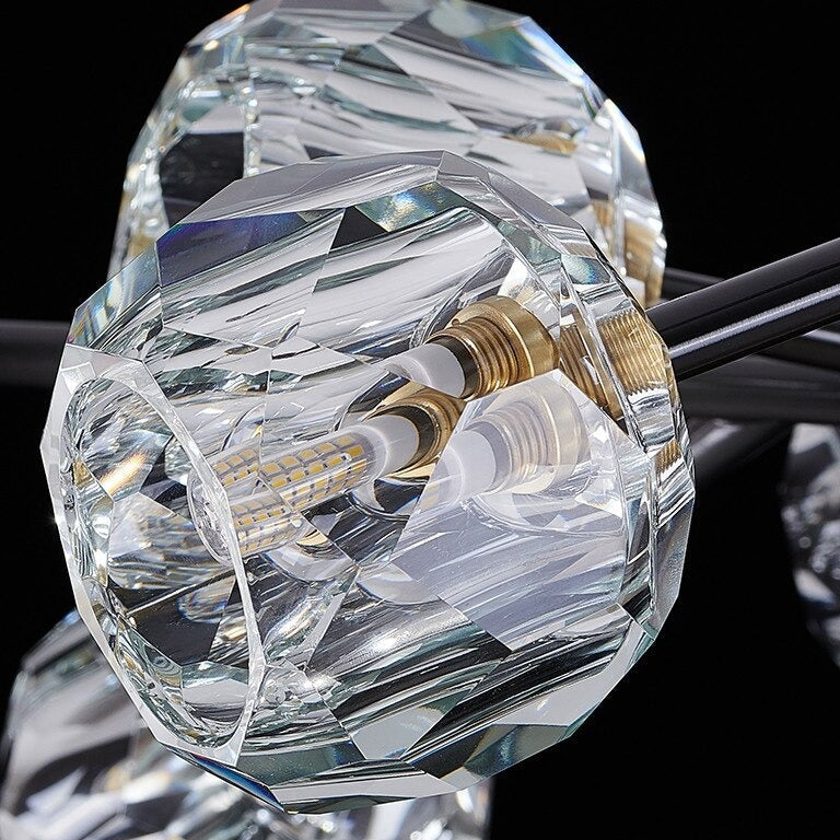 Looking for a striking, statement piece to illuminate your formal or casual spaces This Rama Copper Branch chandelier is designed to wow. The clean lines and crystal details combine to create a light fixture that's modern yet timeless. Featuring a thick stem, this chandelier's shine is heightened by the striking contrast of the brushed and textured metals. Suspended from a ceiling mount, this decorative light source takes center stage and shines at any dinner party or business meeting.