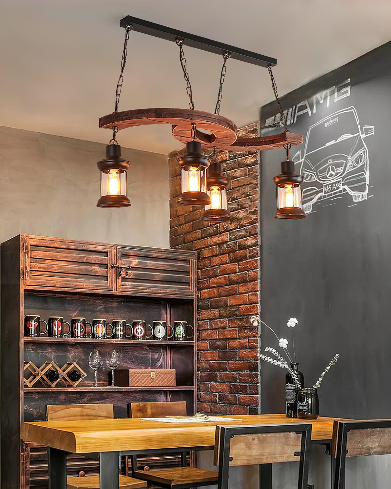 Add a touch of nostalgia to any space with our Retro Boat Wood Chandelier. Crafted from solid wood and iron, this chandelier features a unique log design that exudes a strong retro aesthetic. The clear glass inner lampshade enhances the atmosphere, making it perfect for bars, restaurants, and cafes. Elevate your space with this natural and simple personalized styling.