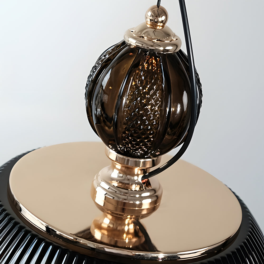 Retro Gradient Dark Green Striped Glass Art Nordic Pendant Lights Fixture