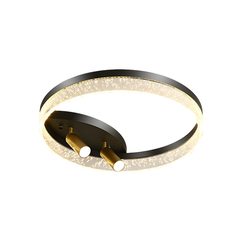 - This ceiling lamp is made of hardware and acrylic material. Its design is simple and fashionable, and it is equipped with two small spotlights, making it more convenient and practical.