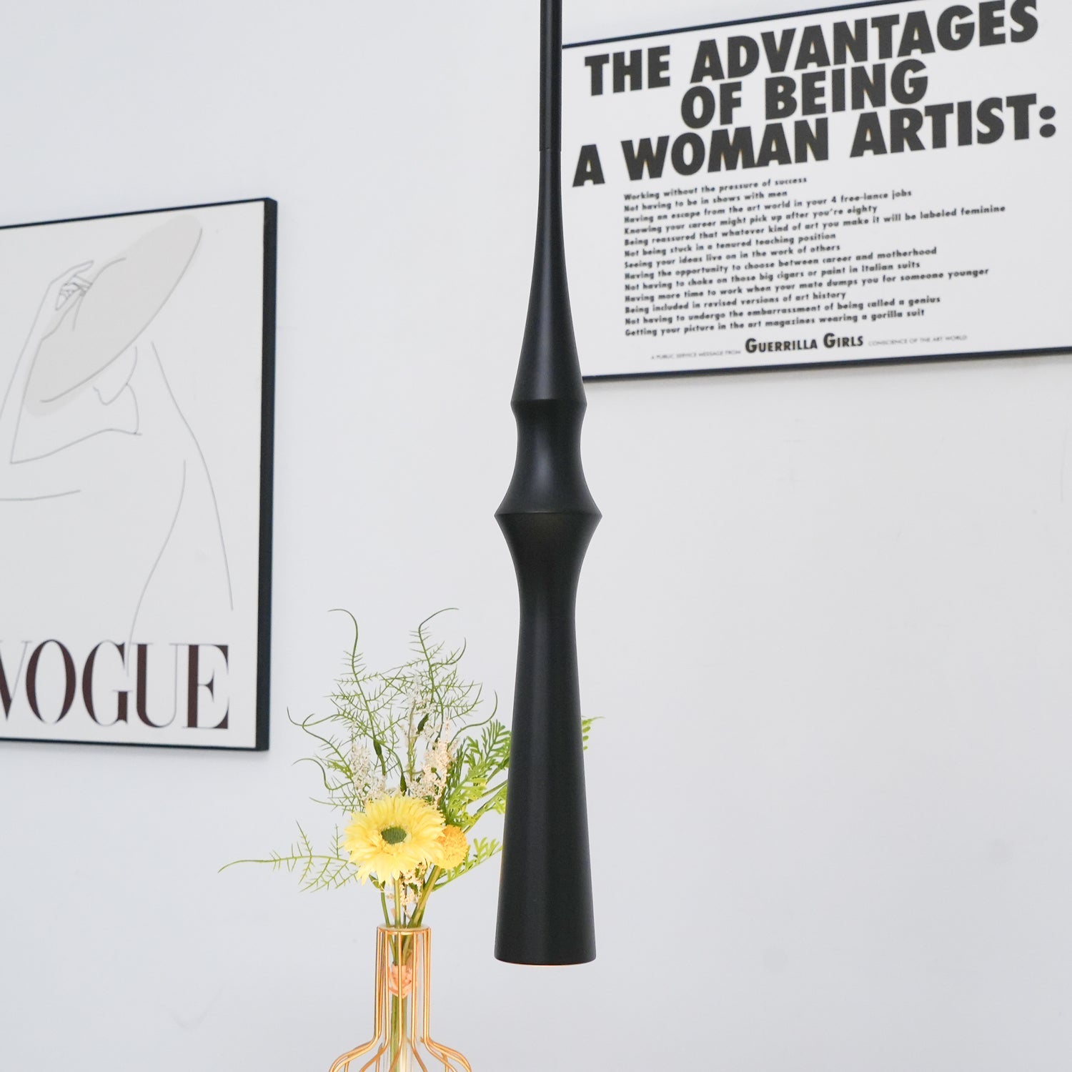 The Slend Pendant Light is an elegantly crafted suspension light featuring a curvaceous form reminiscent of bamboo joints. This stylish product, made from die-cast aluminum, comes in three high-gloss finishing options that complement each other to enhance their combined aesthetics. Equipped with adjustable LED bulbs within its copper lining, the Slend Pendant Light is perfect for tables, counters, and other installations, providing precise and powerful spotlighting.