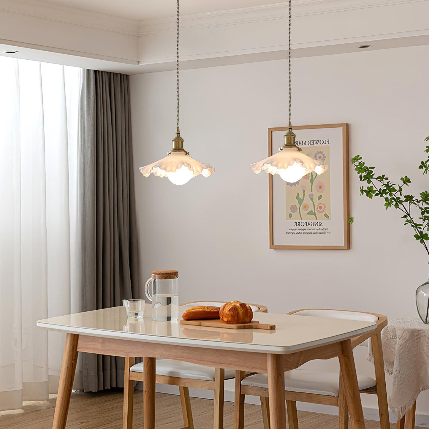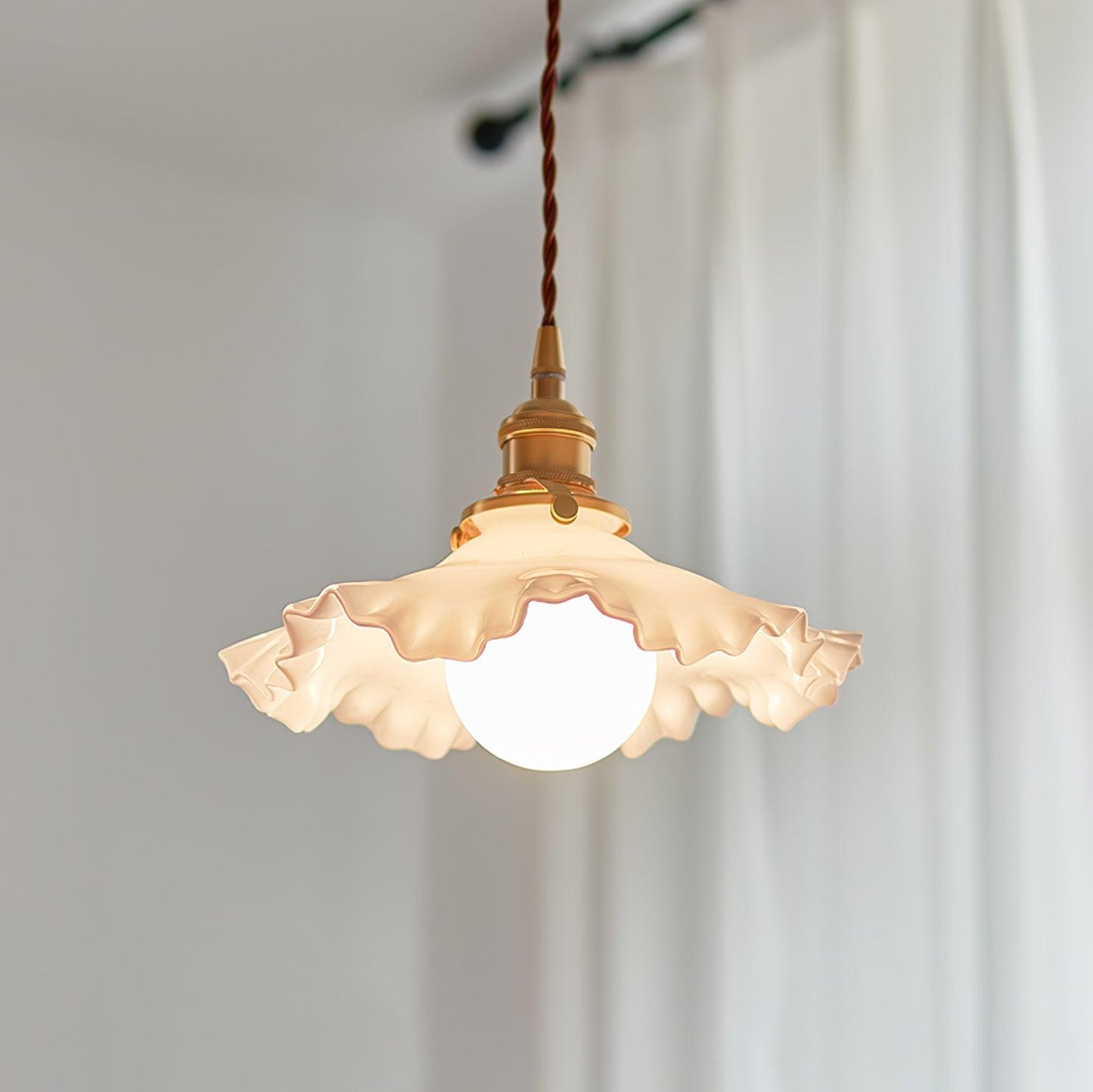 This eye-catching pendant lamp will bring a modern flair to any living space. The unique flower-shaped lampshade creates an attractive contrast with the downward-curving lamp body. Enjoy the perfect blend of beauty and quality lighting – perfect for a modern home.