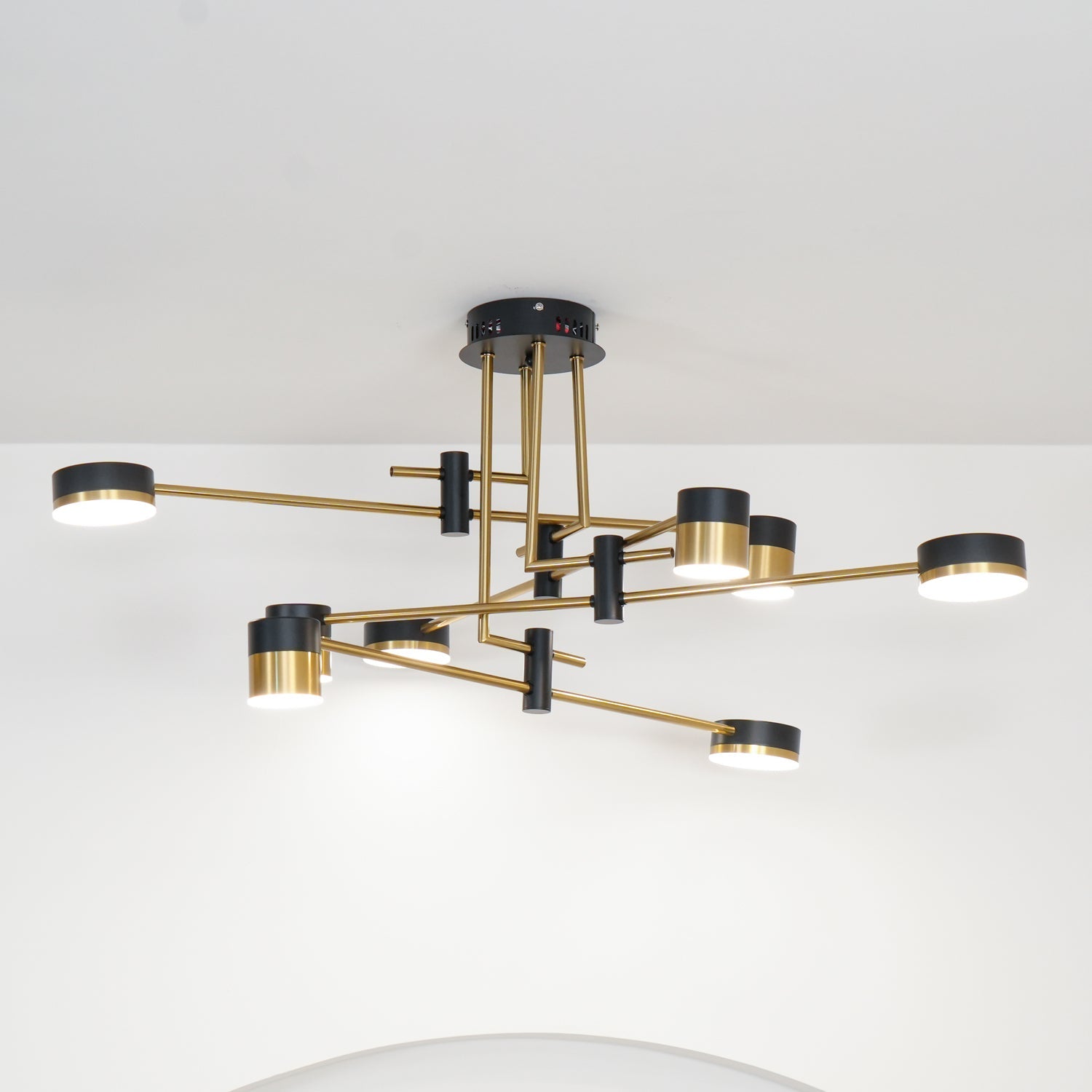 Spider’s six black arms, accented at their ends with shades of gold, reach out and over one another, creating an unmatched visual dynamism and bathing all below in a warm, soft light.
