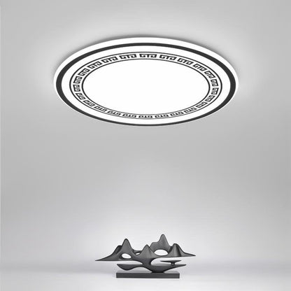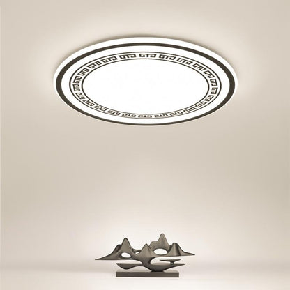 - This living room light is audacious and uniquely styled to mimic the design of an eastern-style dinner plate. Tastefully created in black and white, with geometric patterns between the two outer circles, framed by a thicker rounded black circle. It will complement any eastern style decor in your living space, or alternatively, make a strong style statement as a standalone piece. Choose from regular 16" or large 24" diameter, making it perfect for both smaller and larger rooms. This Japanese-style ceiling light is available in three different brightness, all with stepless dimming, enabling multiple different ways for you to appreciate it.