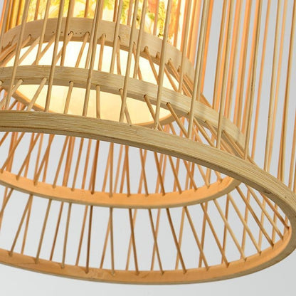Multi-Layer Cylindrical Cage Pendant Light Decorative Bamboo Pendant Light
