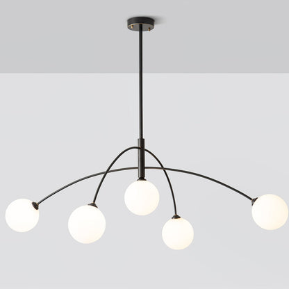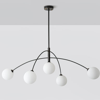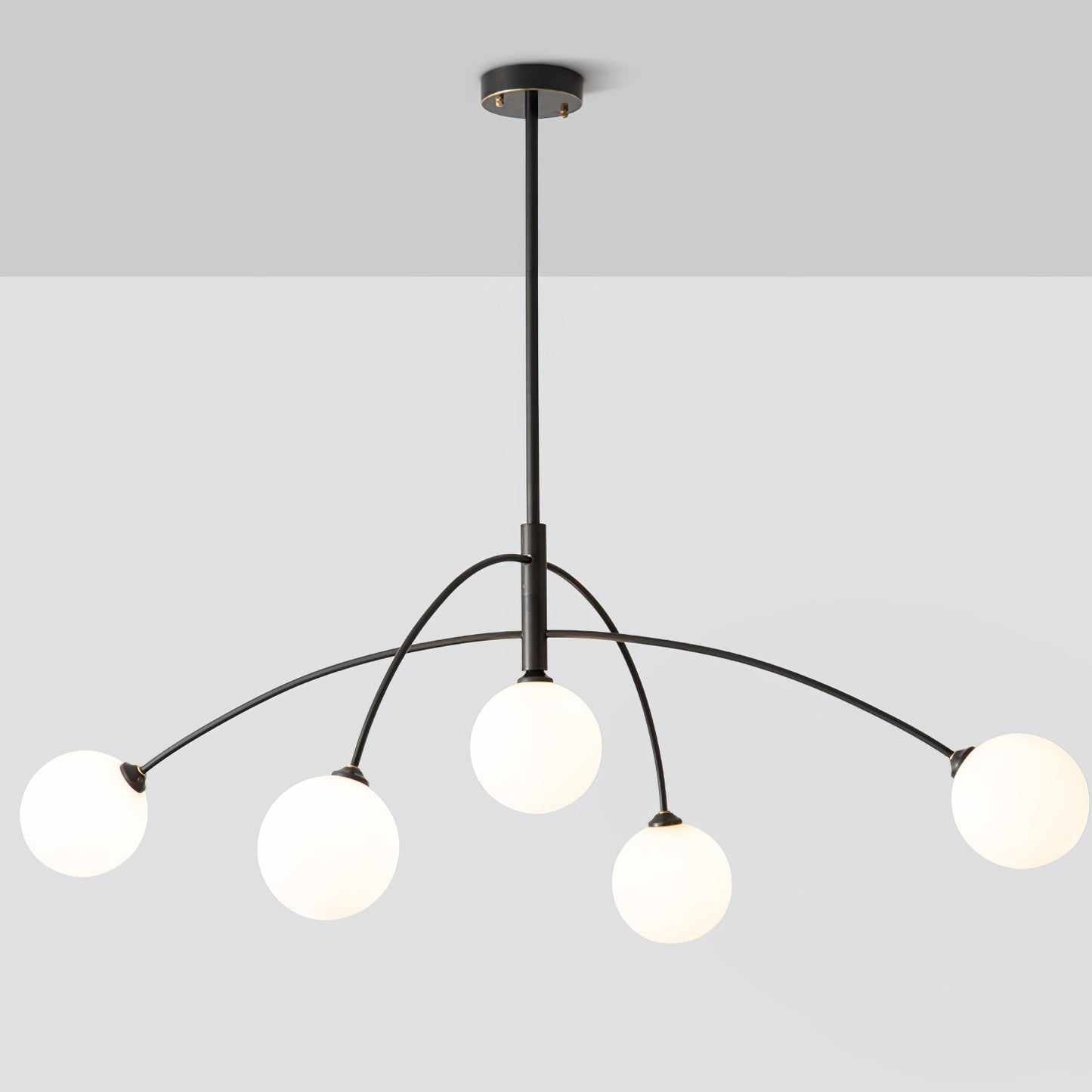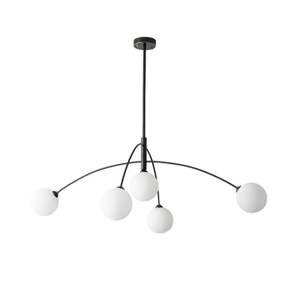 The Valentina Arc Chandelier is a modern lighting fixture that combines spherical and arched design elements. Its versatile design complements any interior and adds a stylish touch above a table or any focal point. Enhance your space with this on-trend piece.