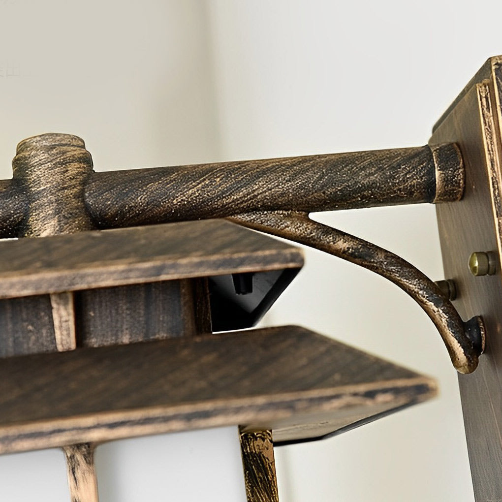 - This outdoor wall light create a retro and elegant atmosphere for any outdoor space, with retro shape and black, bronze lamp body exterior and frosted glass shade.