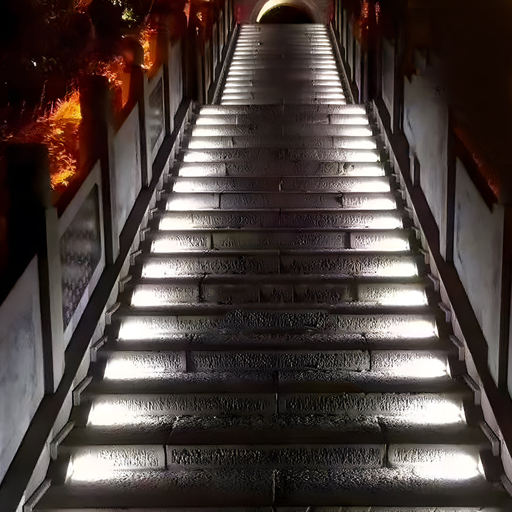 - With a beam angle of 15° and an IP65 waterproof rating, our triangular outdoor lights are perfect for lighting up steps, decks, stairs, and pathways. There are two ways to install them, one is to use structural adhesive to fix the contact surfaces at both ends to the ground, and the other is to drill holes in the wall and then embed these triangular step lights.