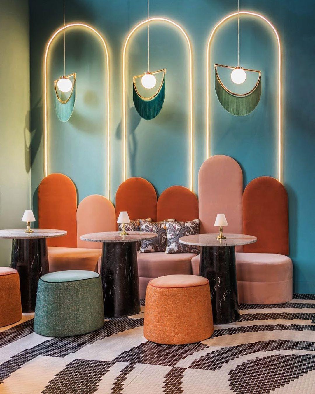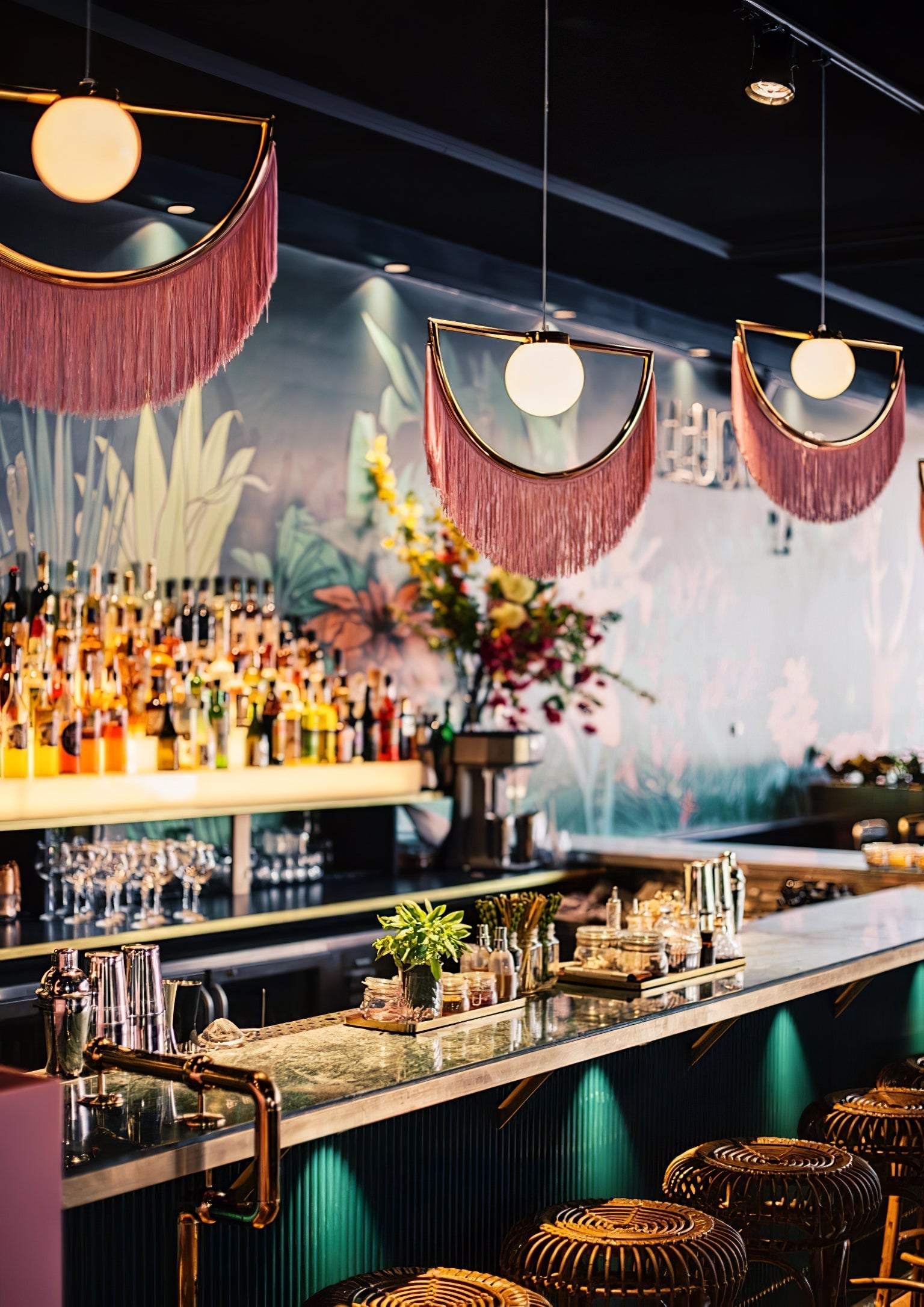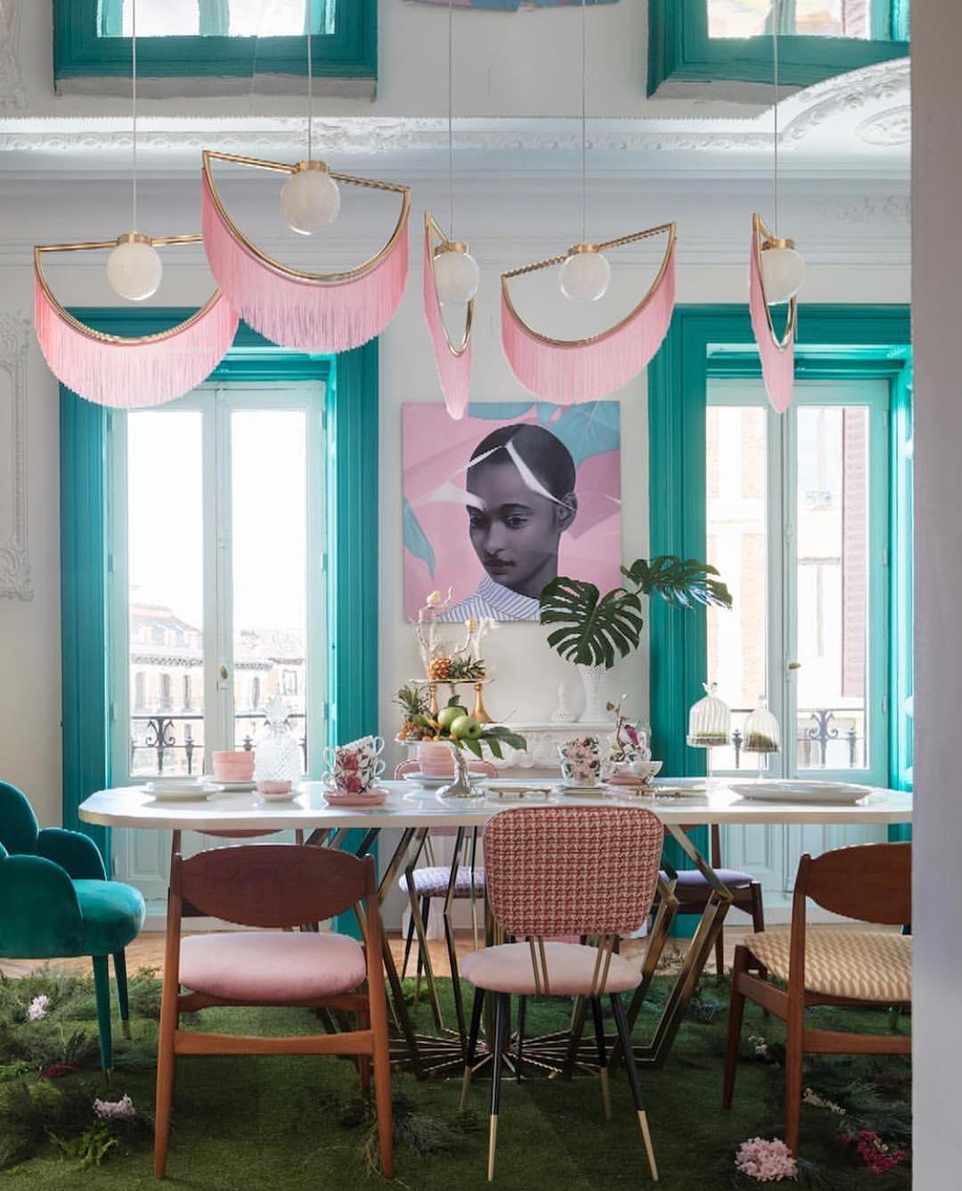 A post-modern inspiration for this glamour and retro pendant. A nod to the past and the present, Wink symbolizes an inverted eye. Decorated with colorful fabric fringes, this sophisticated and bohemian pendant revisits the boudoir theme and 30s style with a great deal of modernity.