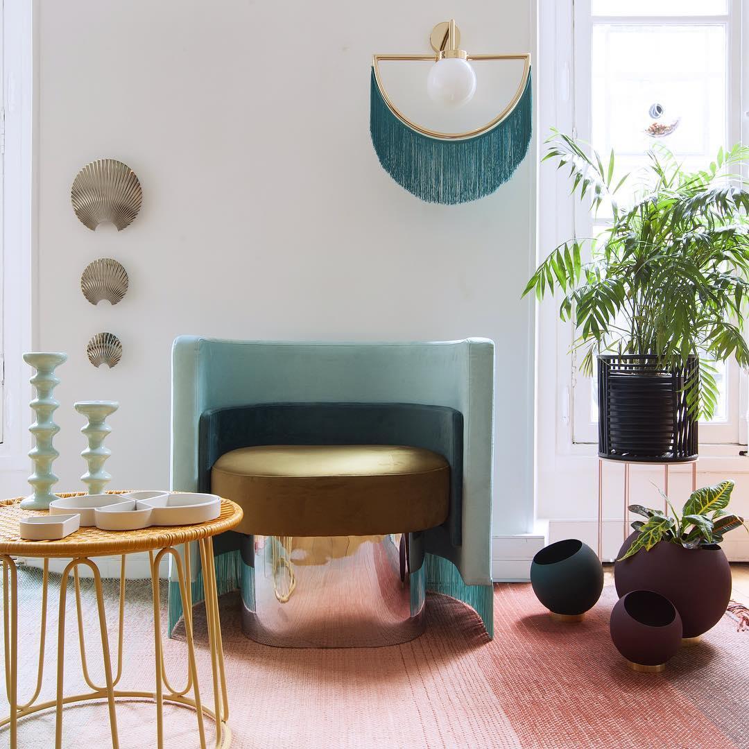 The Wink Tassel Cute Wall Lamp is a charming piece of retro-modern inspiration. The delicate tassels in a variety of colors pay tribute to boudoir themes and 30s aesthetics, creating a strikingly modern look. Decorated with graceful fabric tassels, this Bohemian-style lamp contains a gold-colored metal geometric structure for a precious gem-like finish.